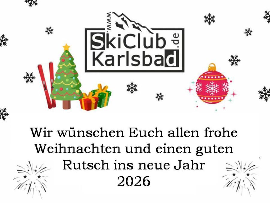 Mit der Hoffnung auf ein schneereiches, sonnenverwöhntes und verletzungsfreies Jahr 2026 wünschen wir Euch viel Spaß und viele gemeinsame Erlebnisse in geselliger Runde beim SkiClub Karlsbad.